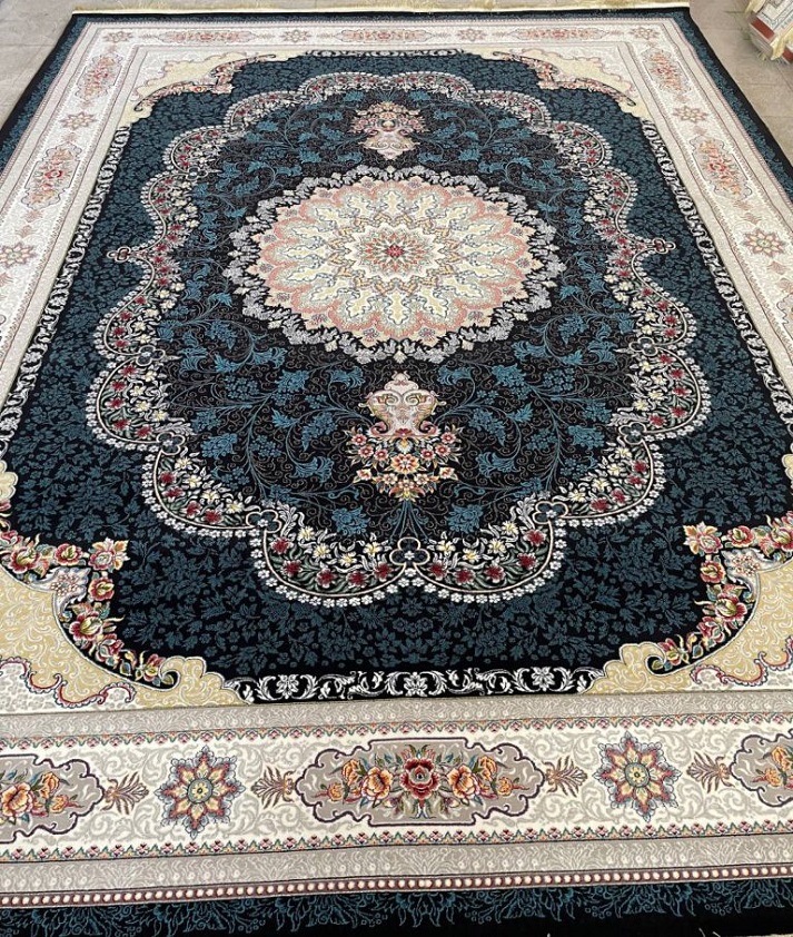 رنگ زمینه این فرش زیبا، می تواند کرم، فیلی، آبی و سرمه ای باشد. که سرمه ای از رنگ های پرفروش این محصول محسوب می شوند.